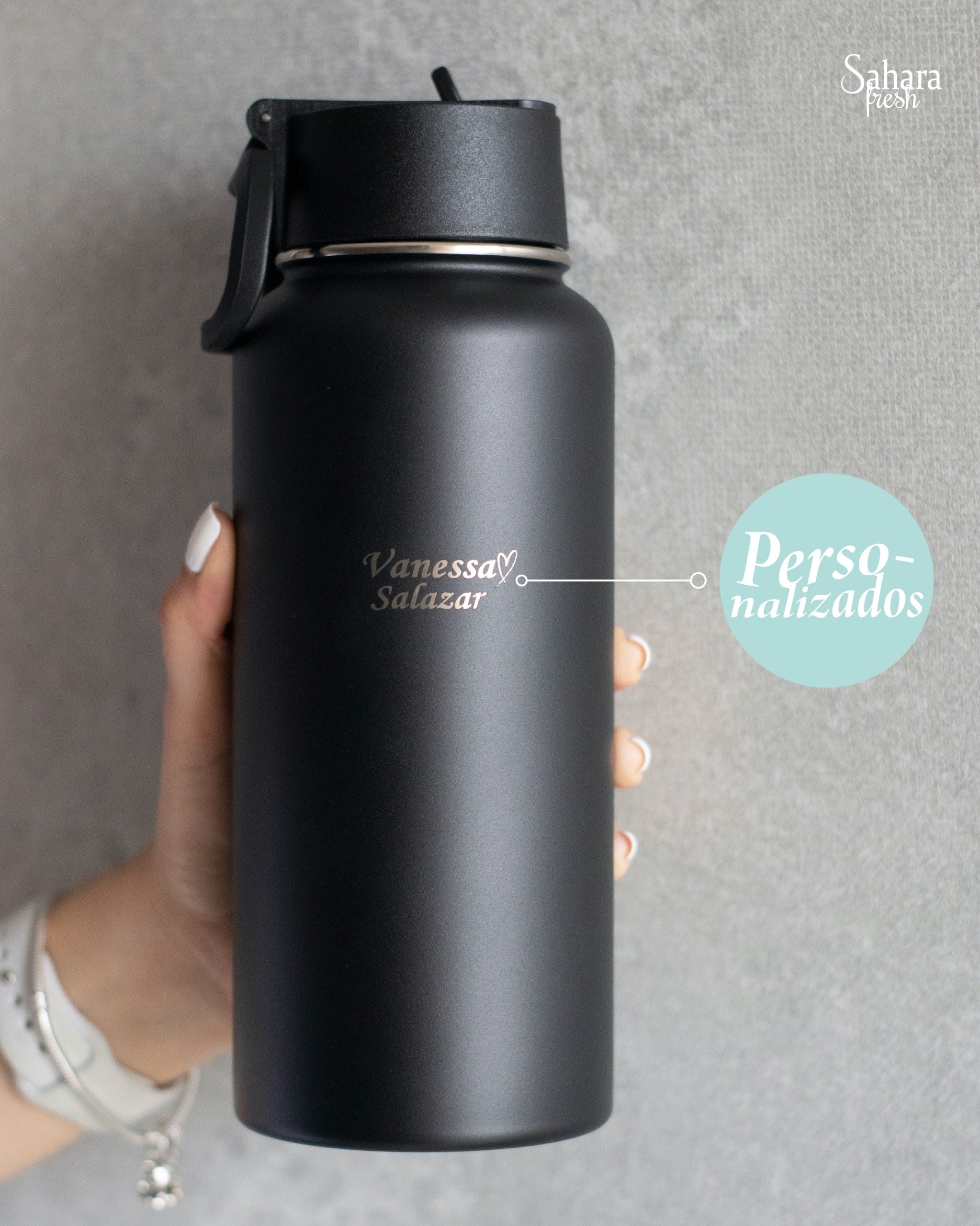 ¡Haz que tu termo sea único! Personalízalo con tu estilo, diseño o mensaje favorito en Sahara. Dale un toque personal y distintivo a tu termo, o crea el regalo perfecto para alguien especial. Si eliges personalizar tu producto, te contactaremos por WhatsApp para definir todos los detalles y asegurarnos de que sea exactamente como lo imaginas.