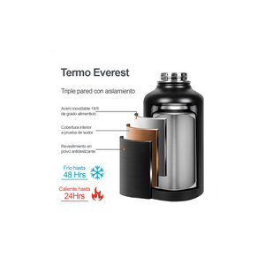 Con 2 litros de capacidad, el termo Everest es perfecto para quienes necesitan mantenerse hidratados todo el día sin recargas constantes. Ya sea en la oficina, en el gimnasio, en un viaje largo o simplemente en casa, este termo está hecho para acompañarte.