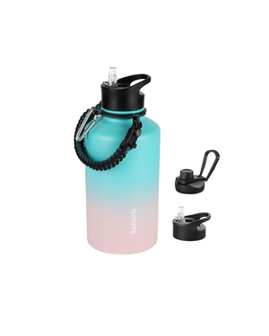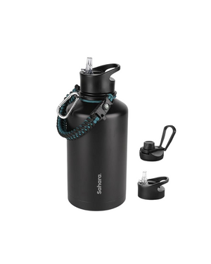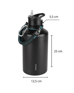 Es práctico para llevar a donde sea, y el silbato en la correa es un toque útil que nunca sobra. Además, mantiene tus bebidas frías por 24 horas gracias a su doble pared de acero inoxidable. Y como todos los productos Sahara: no suda, no gotea, no falla.