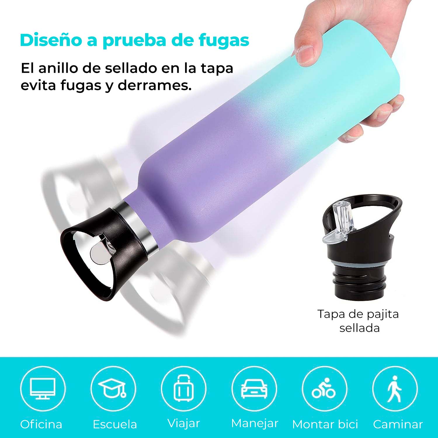 - 750ml de capacidad — más hidratación, menos interrupciones
